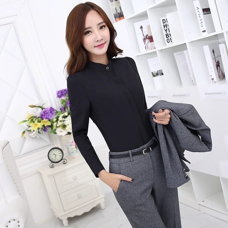 Novelty Black Uniform Styles Female Pantsuits Tops And Pants