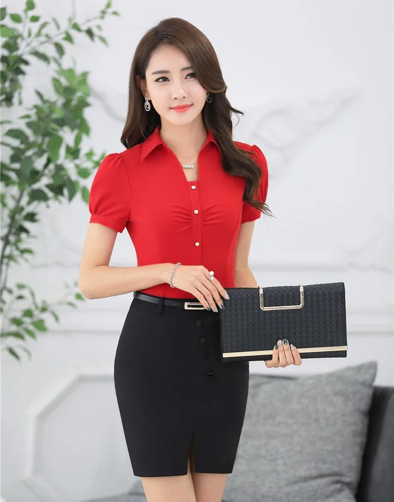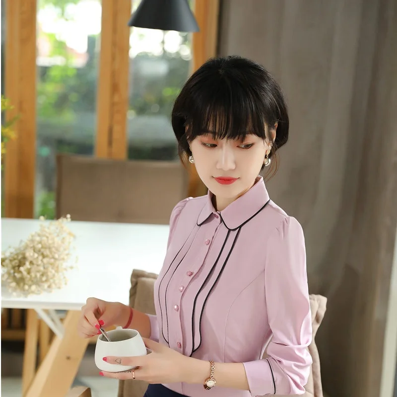 Novelty Pink Uniform Styles Work Wear Female Blouses