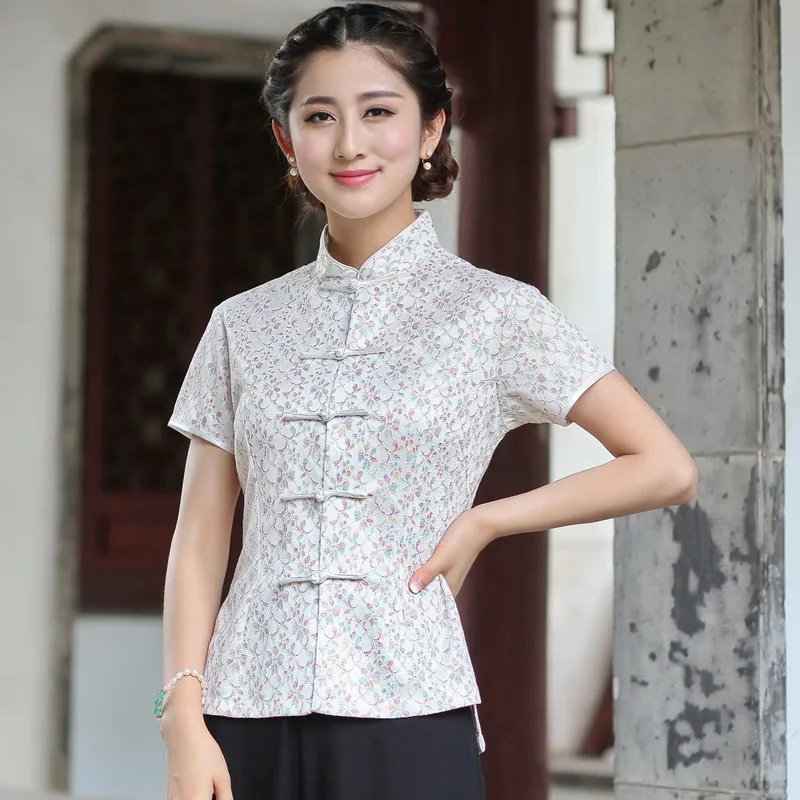 Us 19 92 52 Off New Arrival Summer Chinese Style Lace Women Tang Suit Tops Blouse Traditional Elegant Slim Shirt M L Xl Xxl Xxxl 2520 3 In Blouses